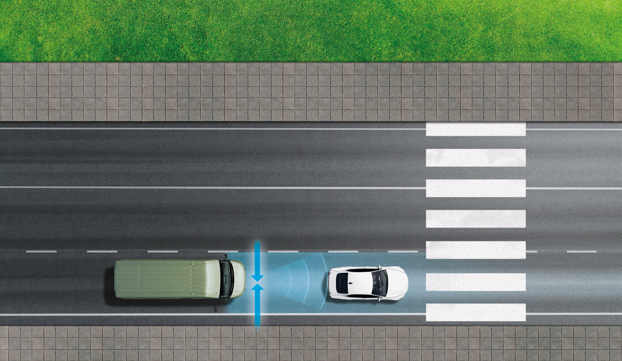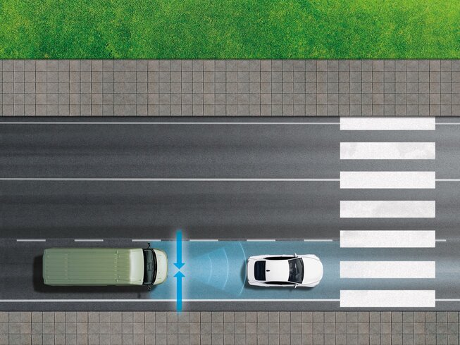 Im dichten Verkehr hilft die City-Brake, Zusammenstöße bei niedrigen Geschwindigkeiten ab 5 km/h zu vermeiden.